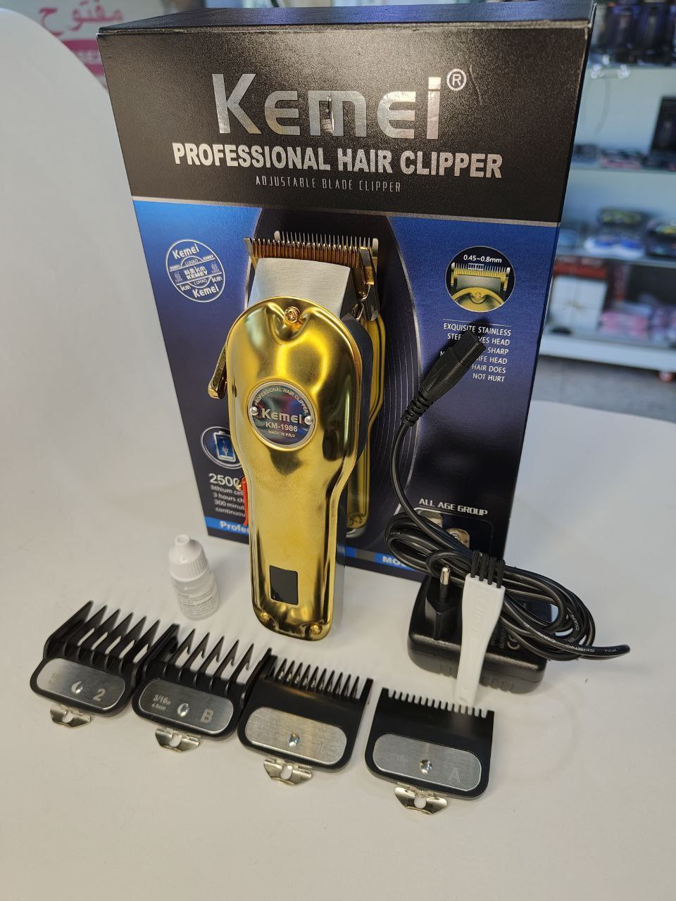🟩معاها 4 أمشاط للتحكم في طول الشعر(فيهم نظام تاع حماية هاذ الأمشاط)+زيت الصيانة+فرشاة للتنظيف+شاحن